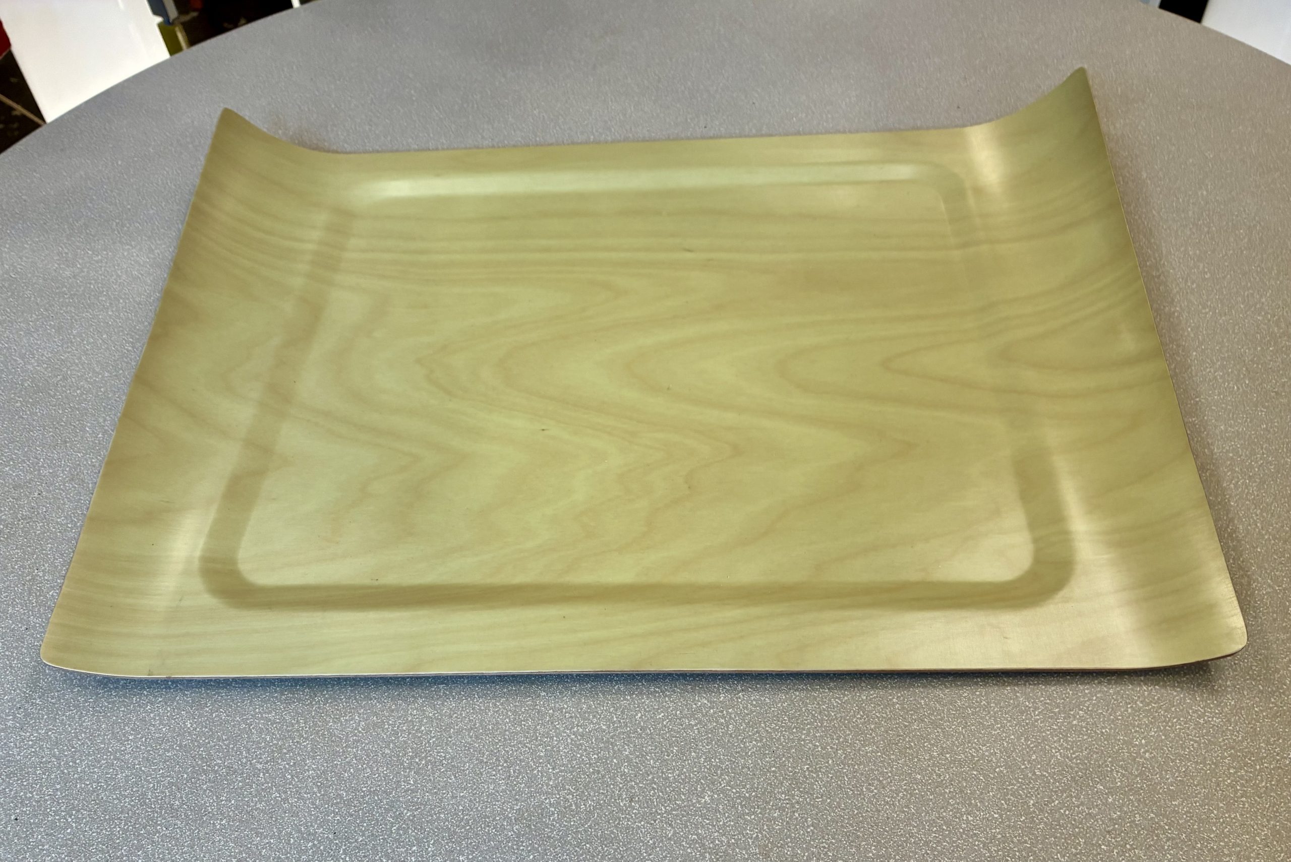 Large trapezoidal shaped Bent Plywood Trays J.P. Boutillier for Axis, Paris. Measures 22 1/2 X 16 1/2″. $85 ea.