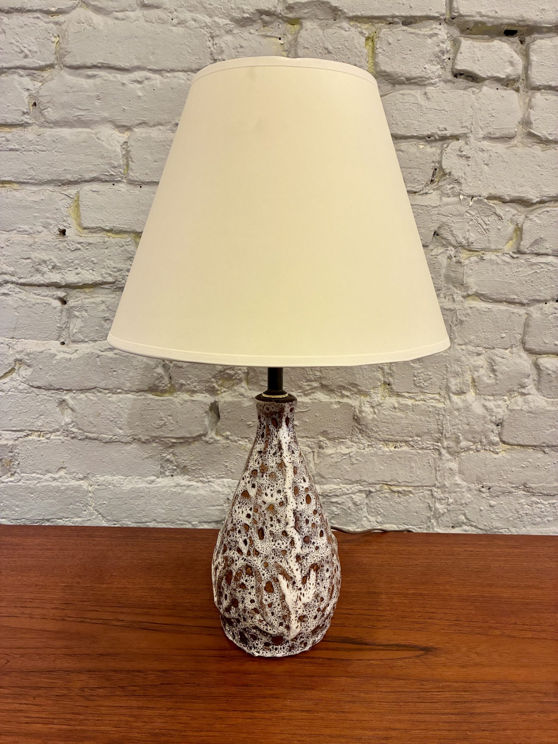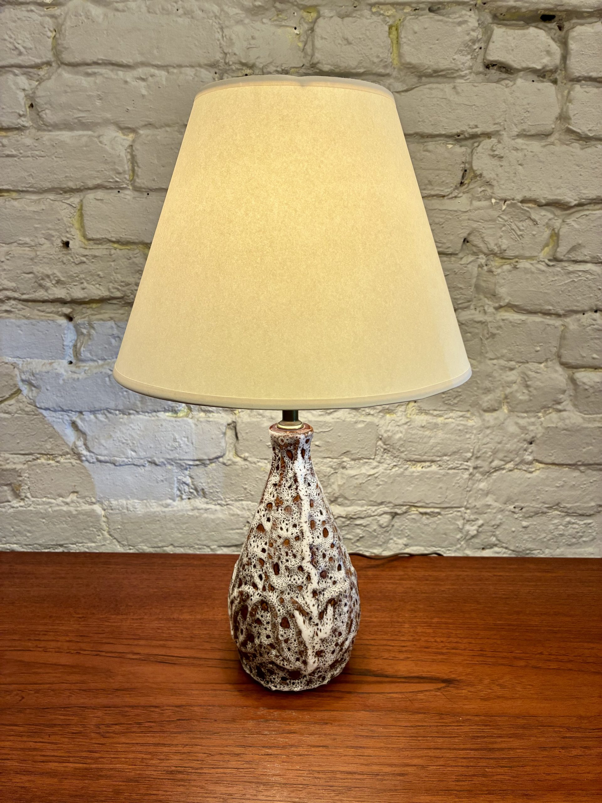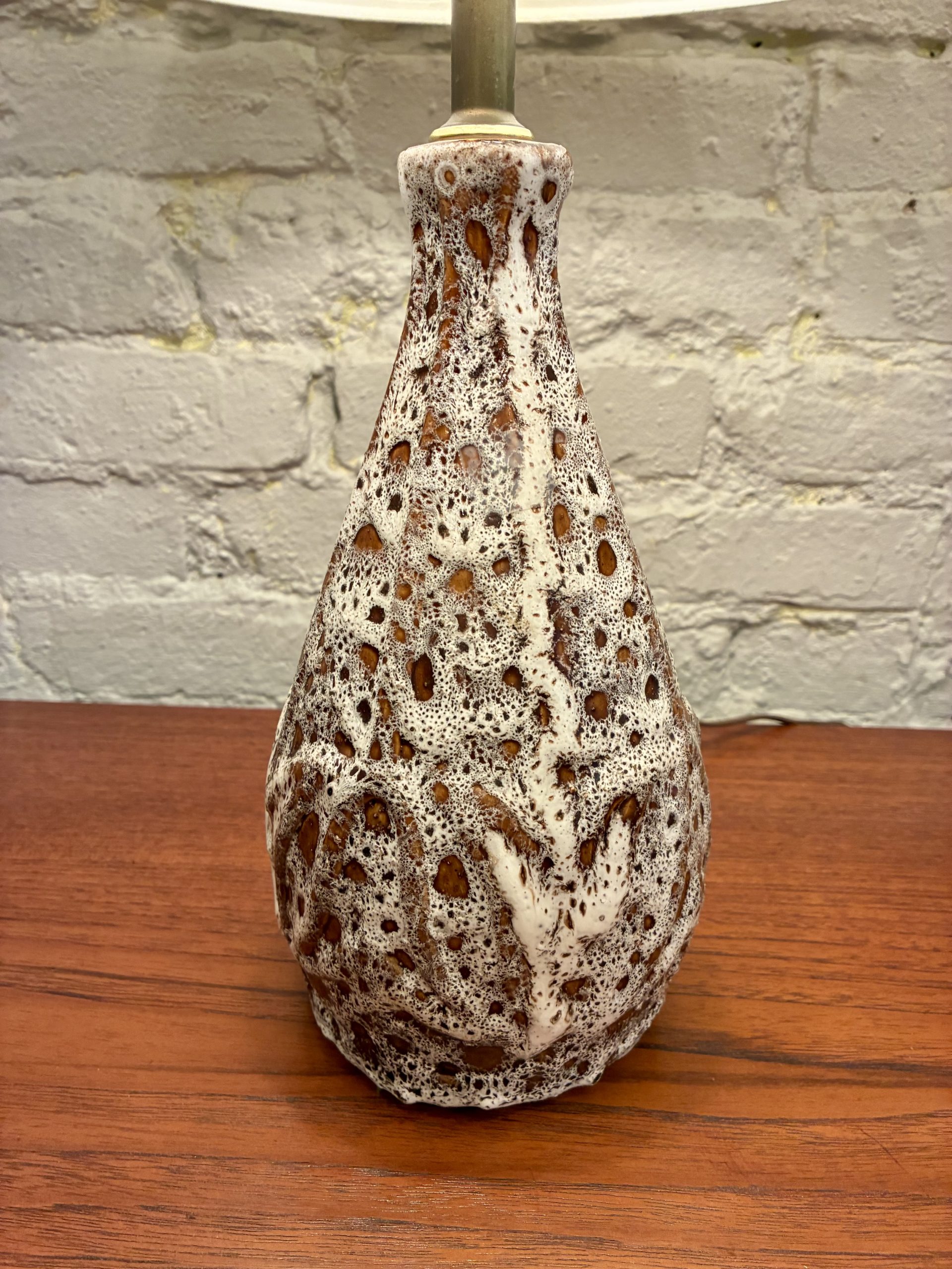 Brutalist Fat Lava Glaze Table Lamp by Maurice Chalvignac. Chalvignac, born Paris 1927, is a mid century modern ceramist who migrated to Canada in 1957 at the height of the Scandinavian influence in design and artistry.
