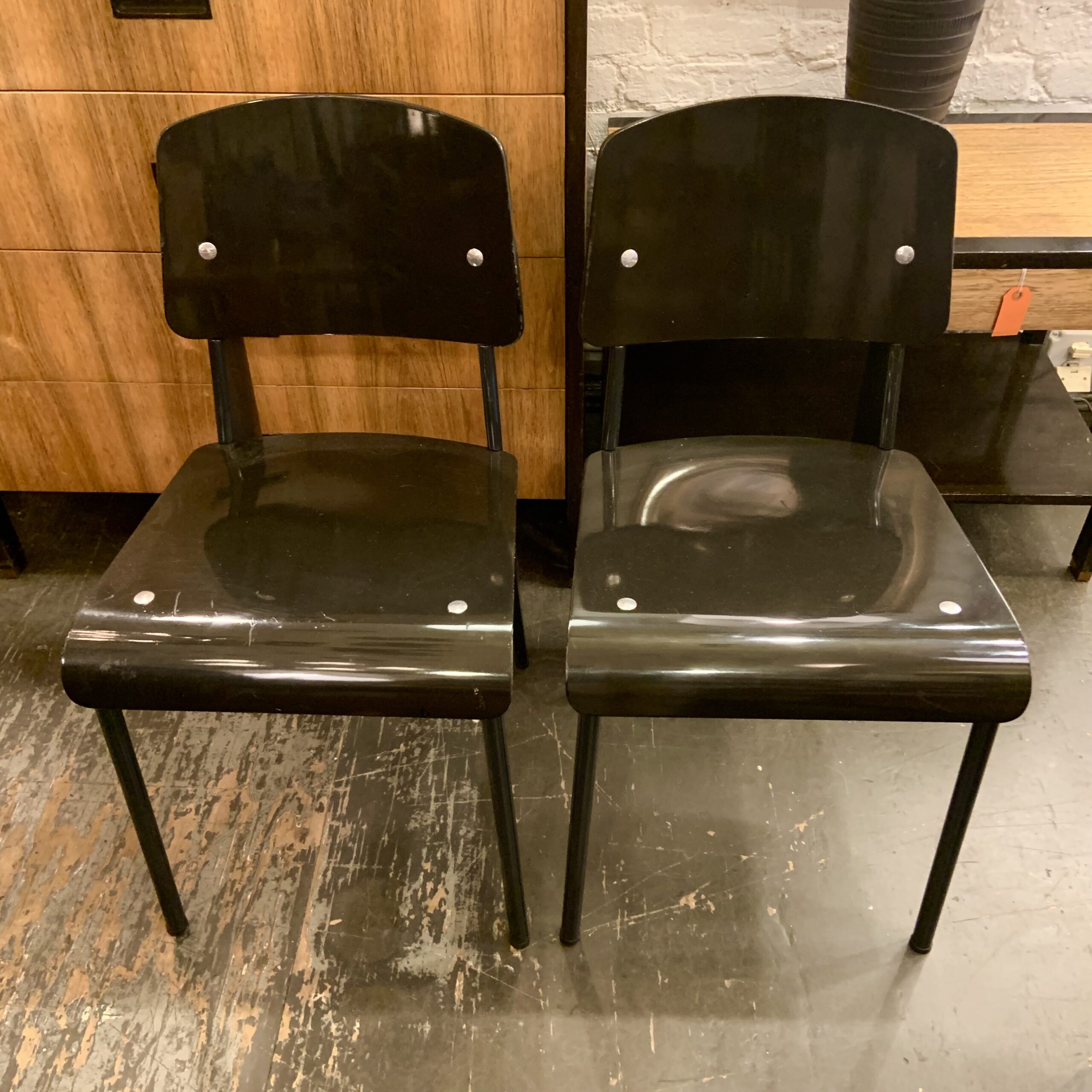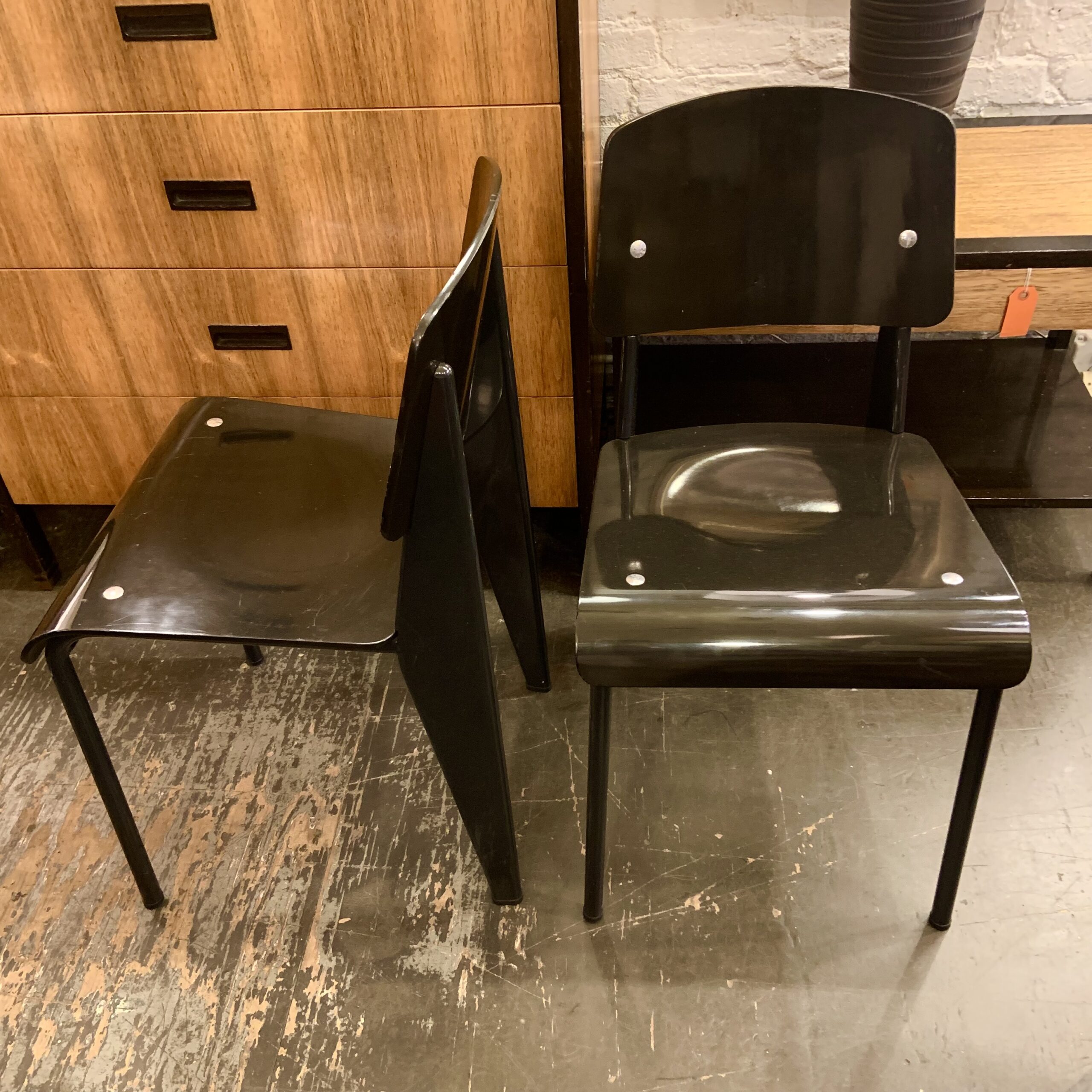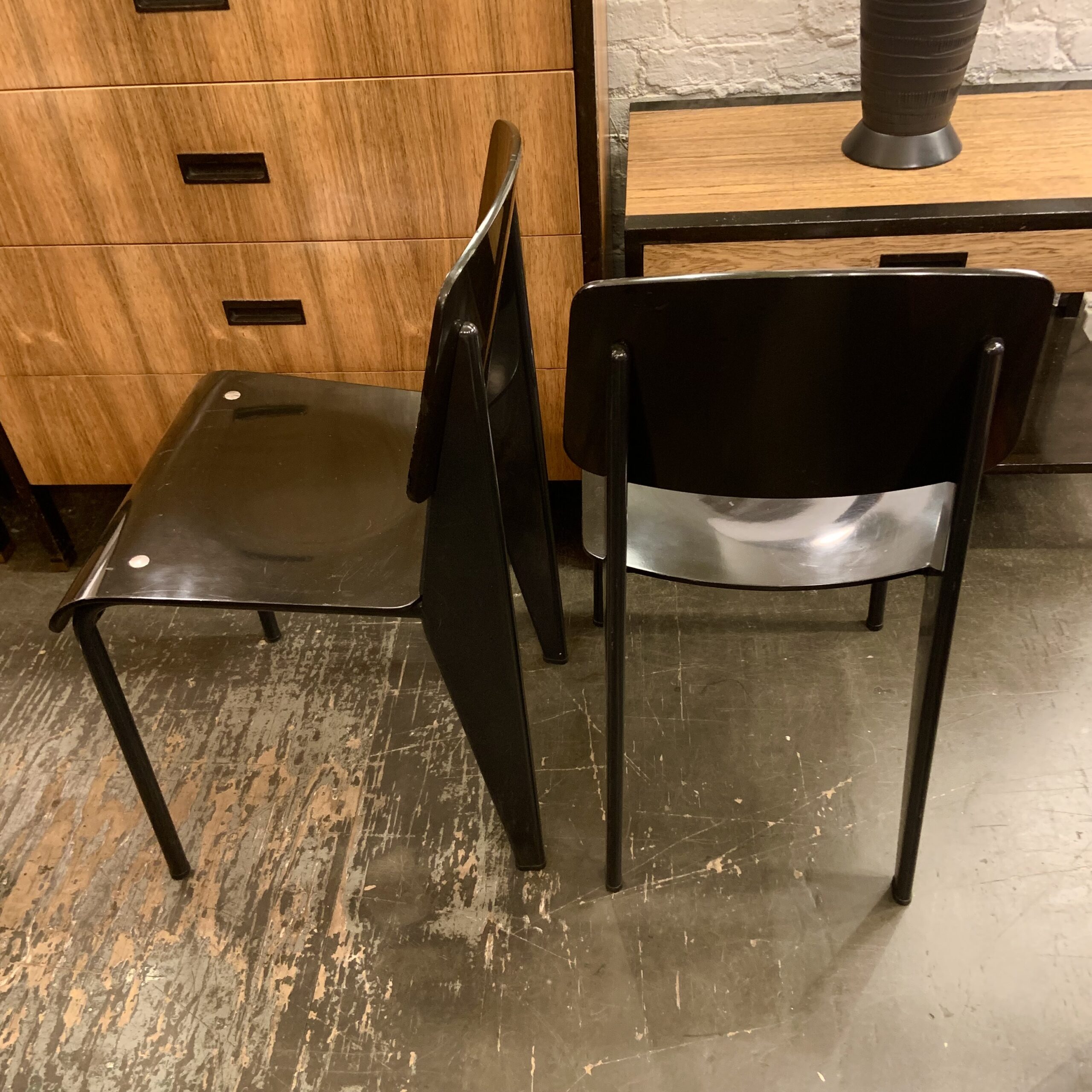 Jean Prouve Standard Chairs in Black made in Germany by Vitra 2003. In very good condition, they measure Height: 32 in Width: 16.5 in Depth: 20 in Seat Height: 17.75 in.