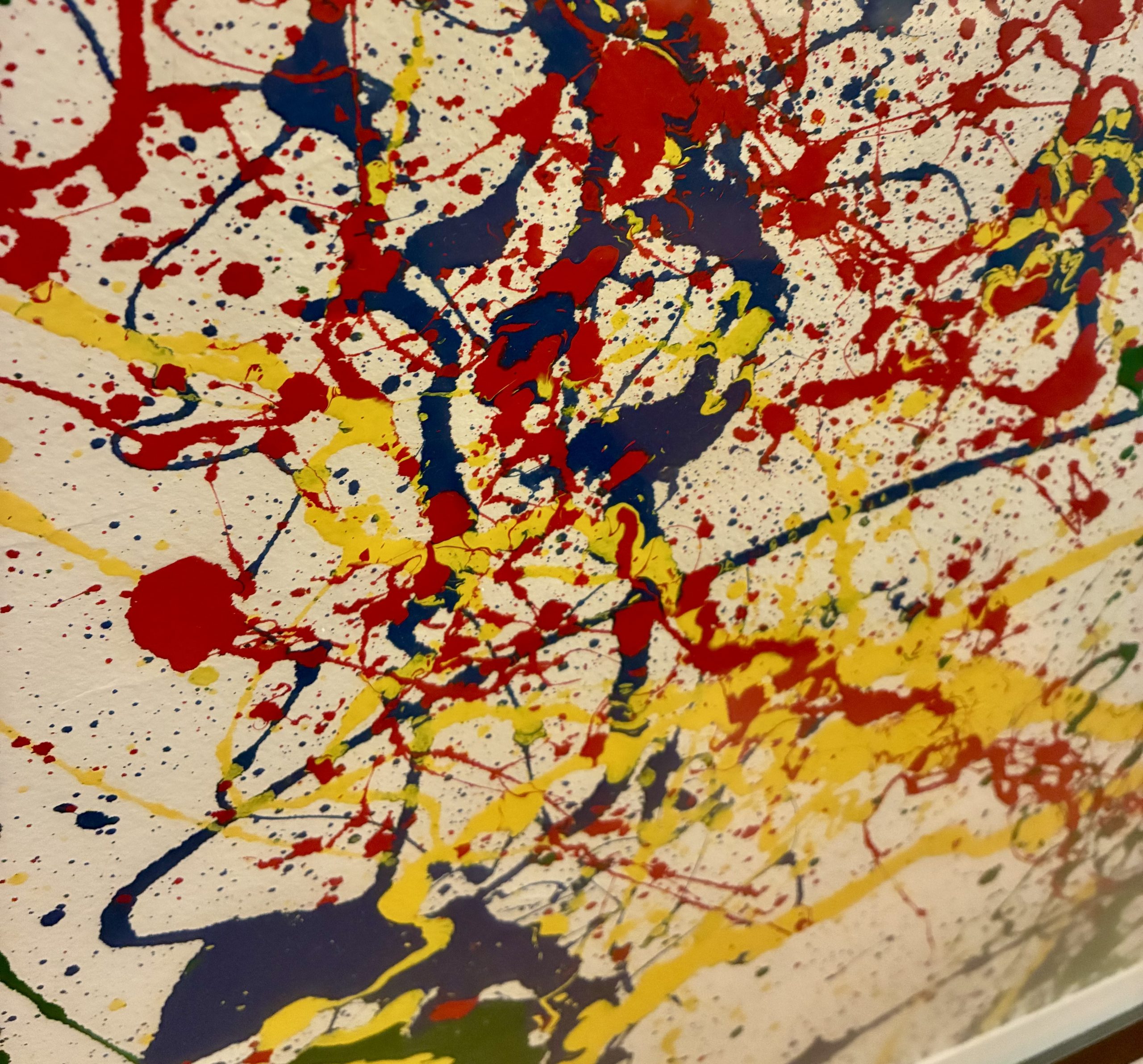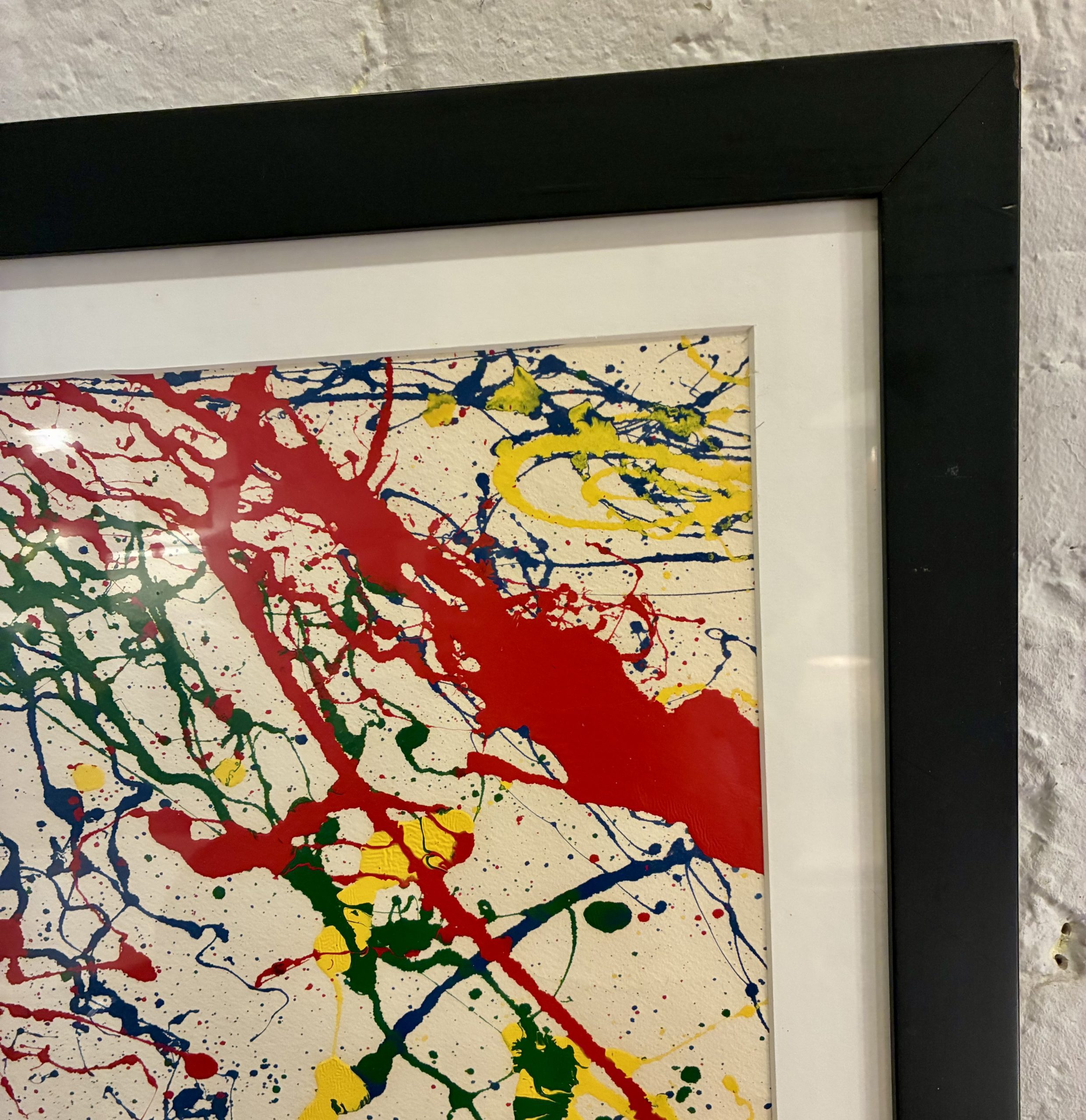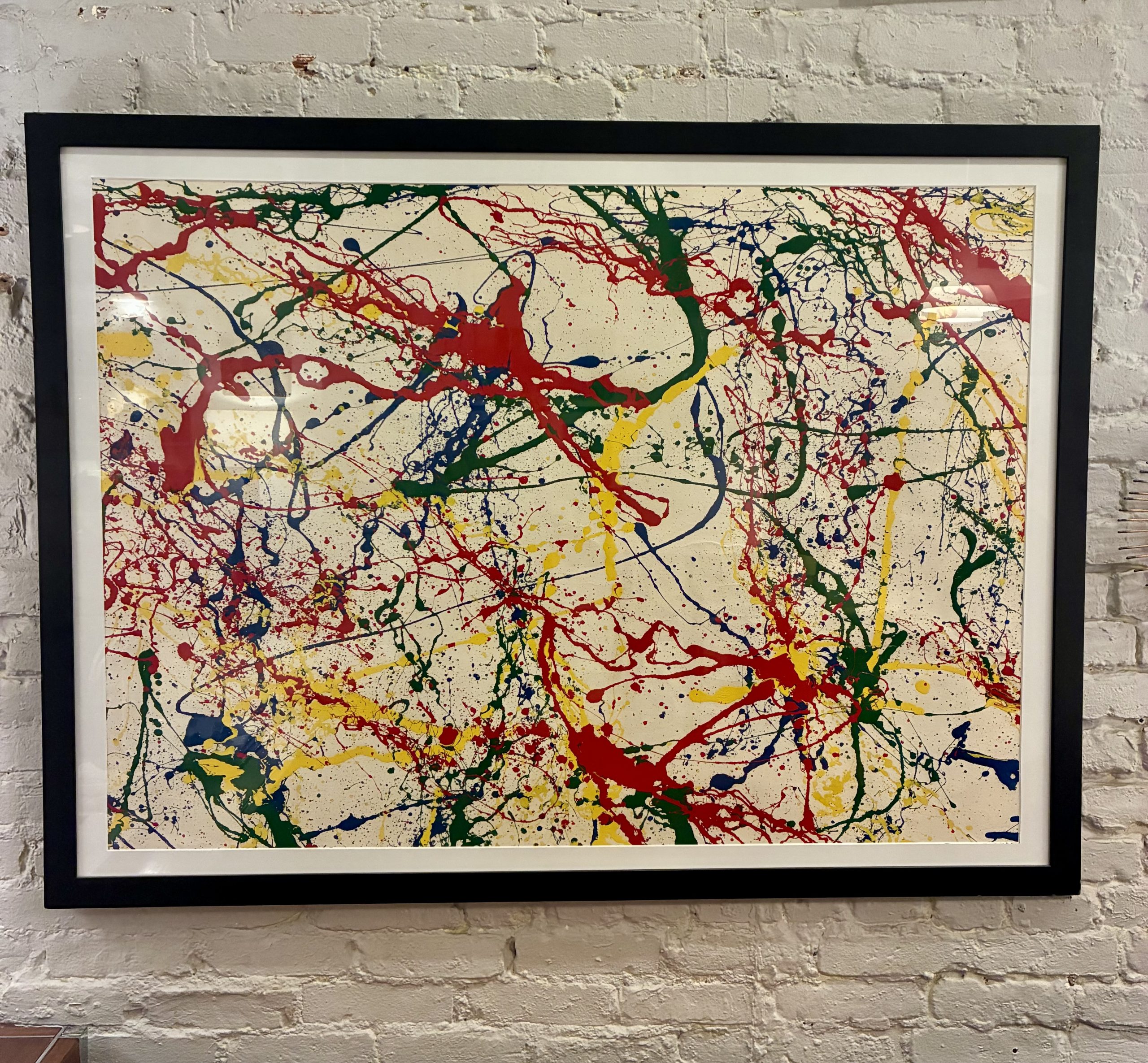Large, Framed, Original Oil on Paper Drip Painting in the style of Jackson Pollack. The painting was purchased in the Hamptons (yeah, I know) and is unsigned. Nicely framed and matted as seen. Measures 53 1/4 X 39 3/4″h. $995