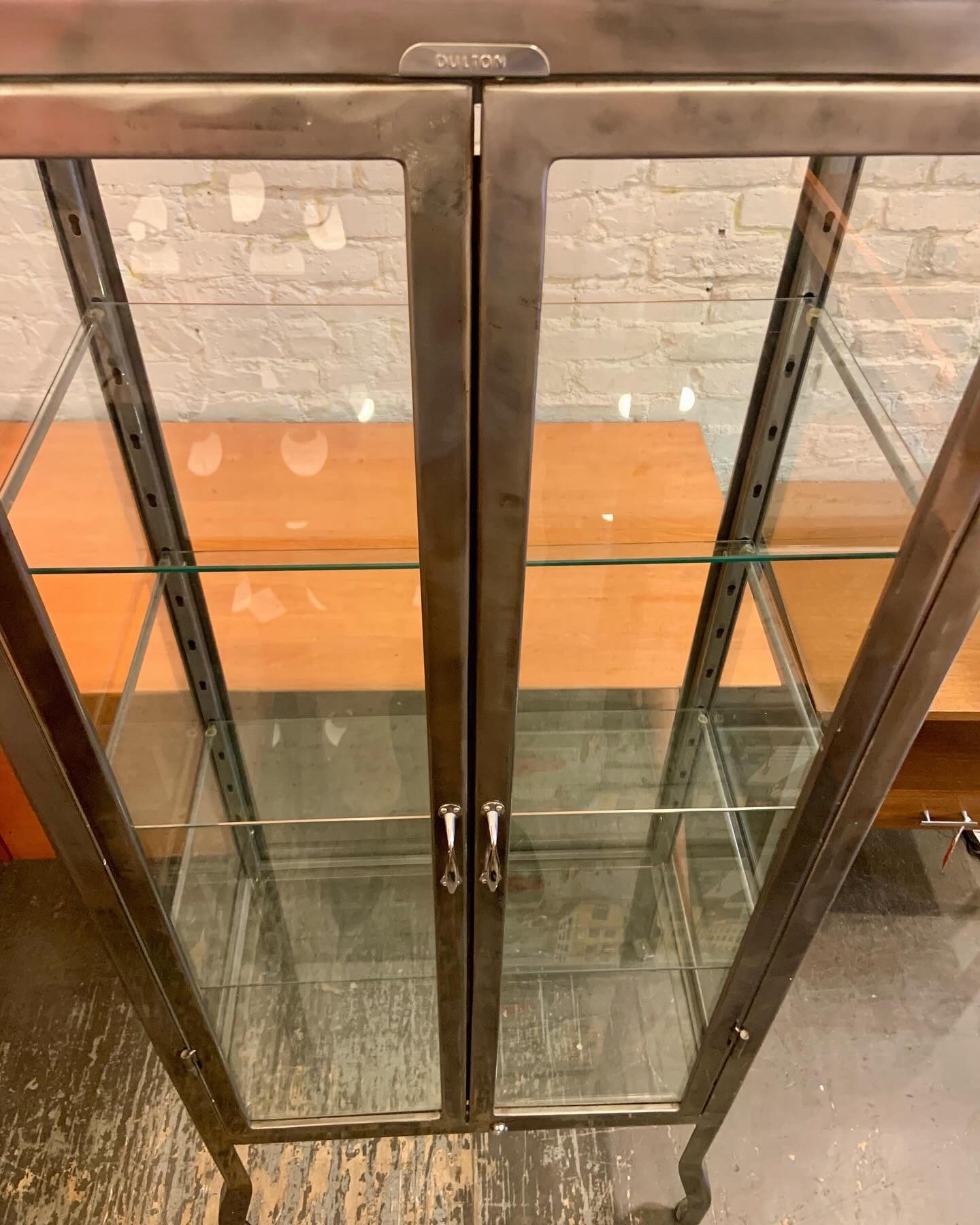 Vintage Polished Metal and Glass Doctor’s Style Industrial Cabinet by Dulton, originally done for Restoration Hardware. In excellent condition, It measures 27 1/2 X 17 1/2 X 63 3/4″h.