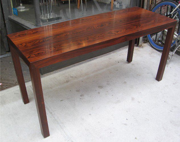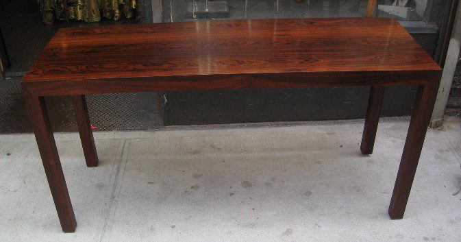 Parsons Style Console / Writing Table in Brazilian Rosewood from the 1960s. It is in excellent condition with light wear to the top. Measures 20 X 54 X 26 1/2″h with 2″ apron and legs .