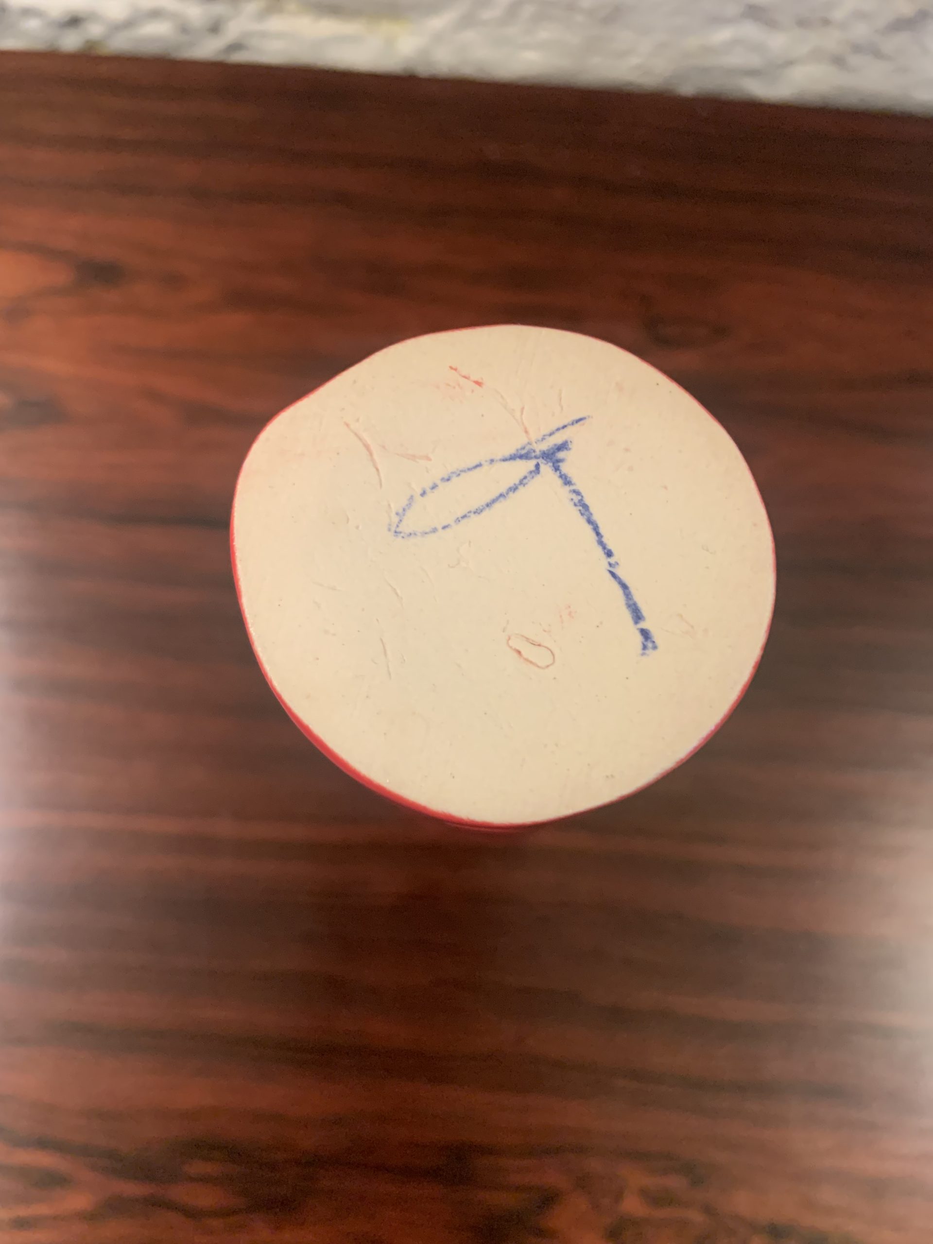 Delicate and whimsical, Porcelain Slab Vase in Red with Impressed Dimples. In excellent condition, it is unmarked and measures 2 X 6 1/2″h.