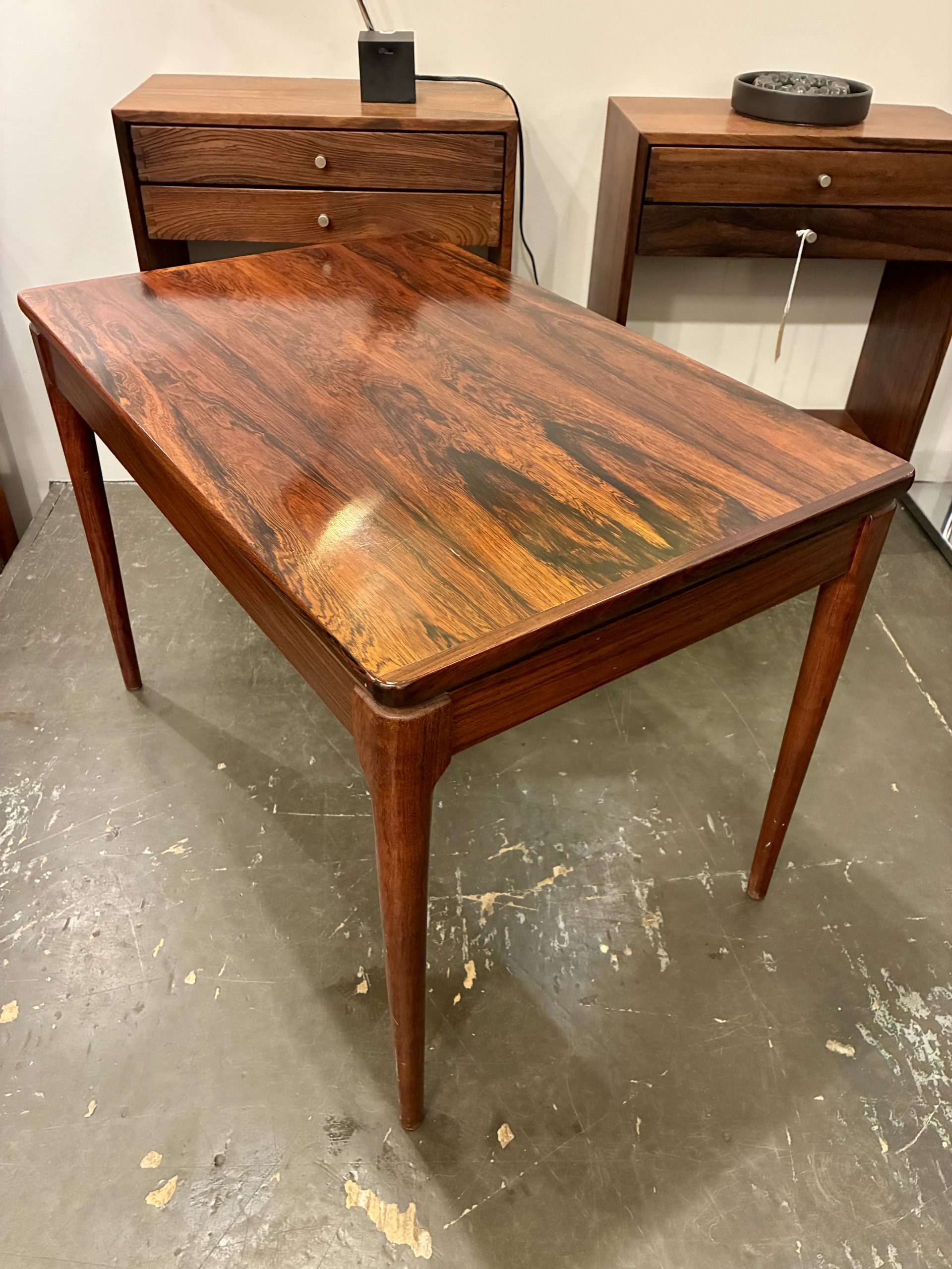Rosewood Side Table from Norway by Ganddal Mobelfabrik in the 1960s. This 60 year old table still has sparkle. Measures 17 3/4 X 26b 3/4 X 19 1/4″h. $450.