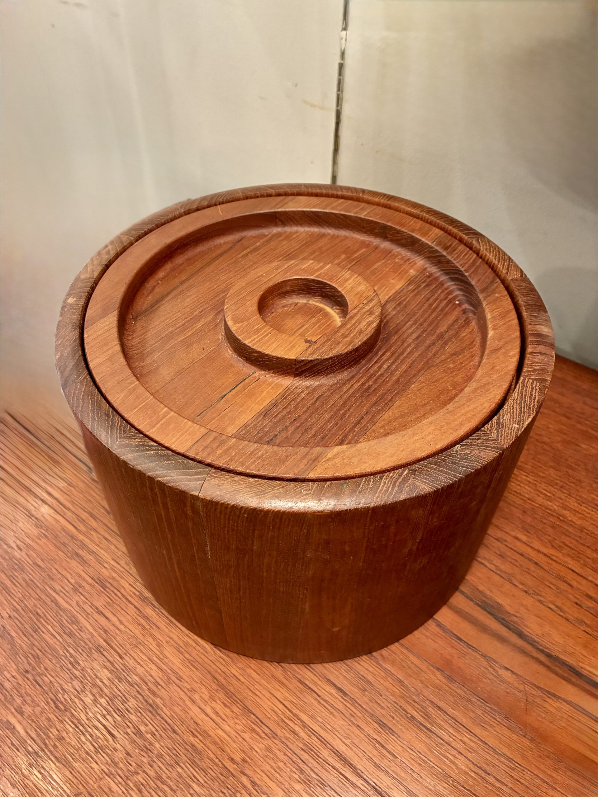 Quintessentially modern Staved Teak Ice Bucket with plastic liner by Jens Quistgaard for Dansk. $110