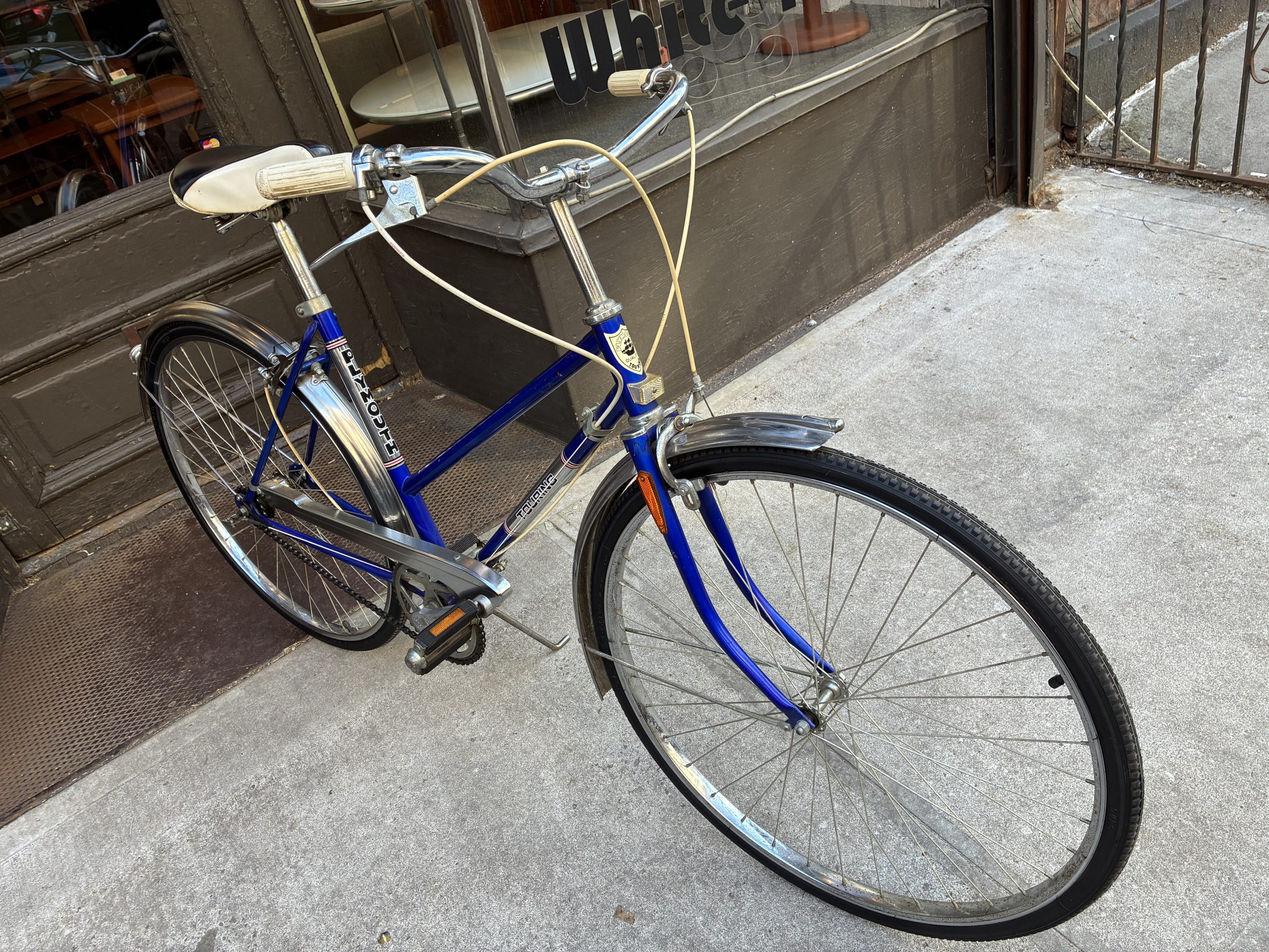Vintage Three Speed Twist Shift Girls Step Through Bicycle by Plymouth from the 1980s. In excellent, original condition with lots of chrome accents and cute black and white seat. Ready to ride! $150