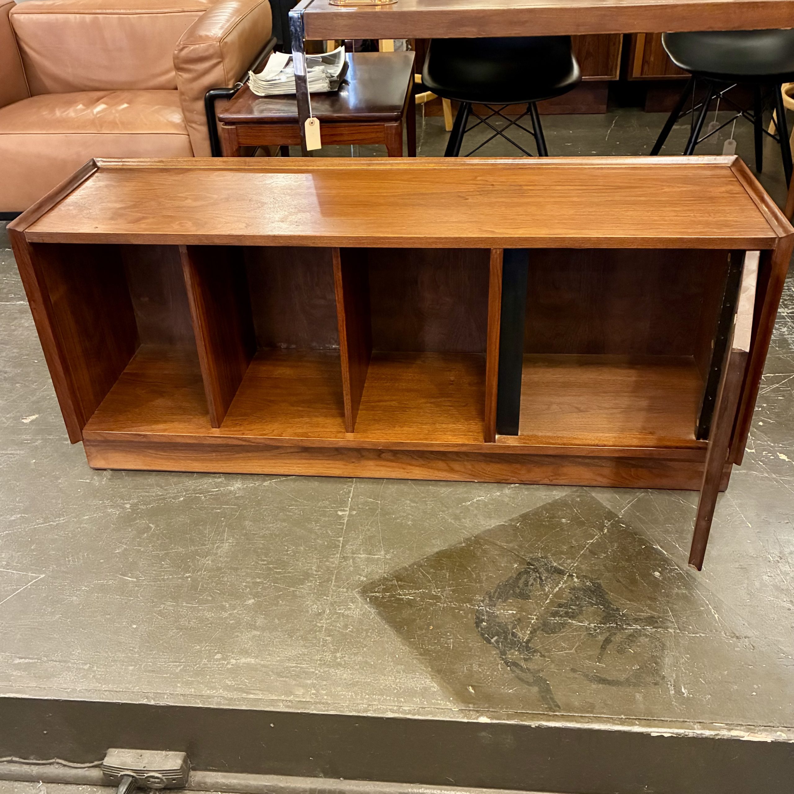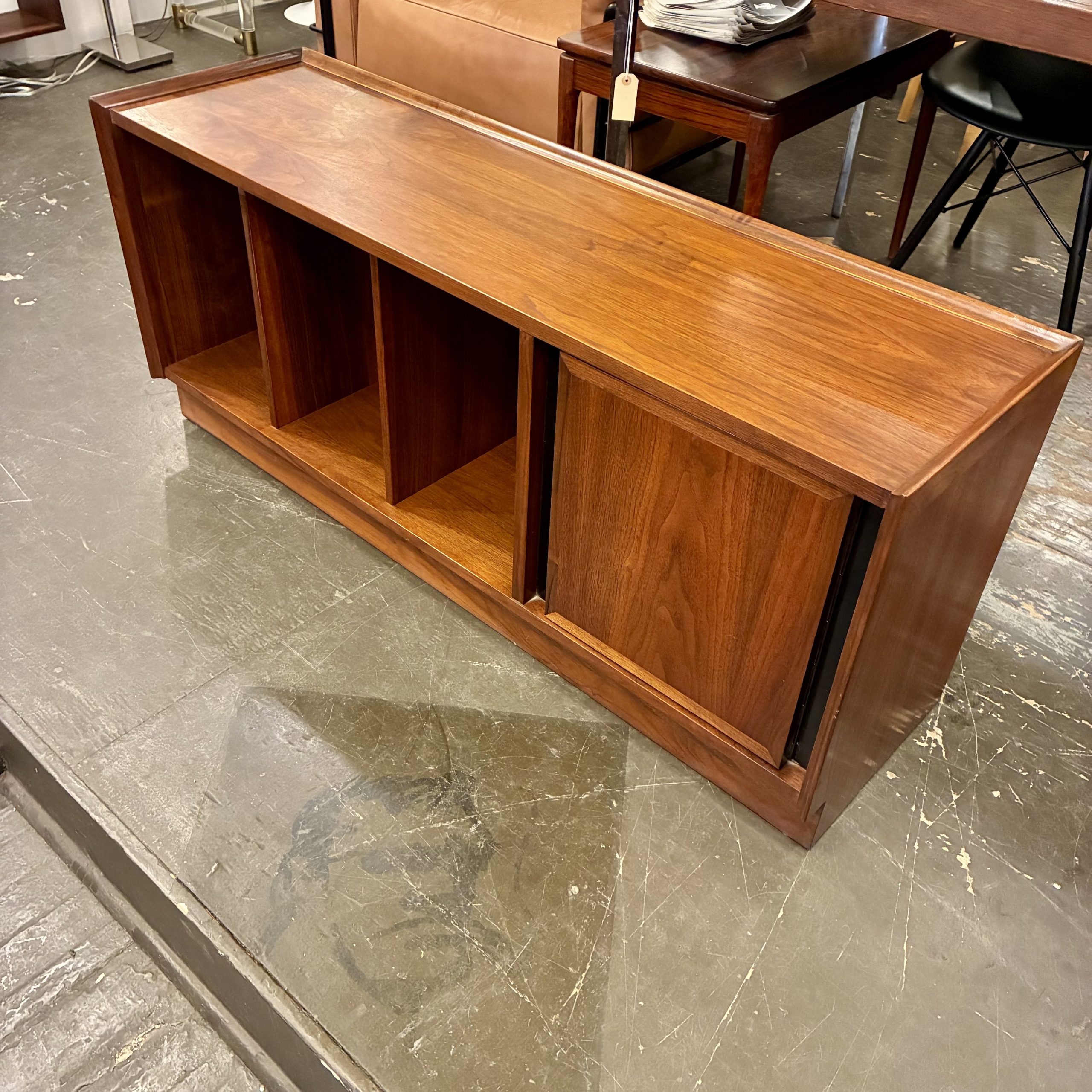 A wonderfully versatile Walnut Record Bench by Merton Gershun for Dillingham Esprit from the 1960s. Well suited for so many uses from entry hall to bedroom or playroom. In very good condition with light wear, it measures 48 X 14 X 20″h. $950.